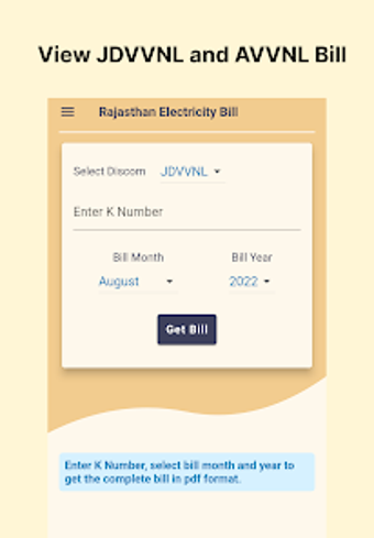 Deze applicatie ondersteunt facturen van de drie grote elektriciteitsleveranciers in Rajasthan: Jaipur Vidyut Vitran Nigam Limited (JVVNL), Jodhpur Vidyut Vitran Nigam Limited (JDVVNL) en Ajmer Vidyut Vitran Nigam Limited (AVVNL). Het is belangrijk op te merken dat deze app niet verbonden is met de overheid of de bovengenoemde elektriciteitsmaatschappijen, en dat de informatie direct van hun websites wordt gehaald.